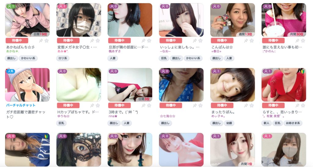 ちなみに男性側から見た画面はこんな感じ・・・。みんな本当にまったりと自分のペースでおしゃべりしているという感じです。