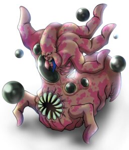 集合体恐怖症の人には我慢ならないキャラクターです。そんだけ目がついているのに本人自身は自分自身は自分の目の数に気づいてないと思います。何故ならそんなに強くないので、結局はそれだけの目でほぼ何も見えてないということになります。弱いくせにタトゥーを入れまくってイキってる男のような気持ち悪さがありお近づきになりたくはないですね。