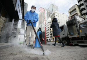 ・1月下旬、東京・六本木の交差点で宮本さんは慣れた手つきで地面を磨いていた。英国製の専用機器を使い、黒ずんだ箇所に約130度の蒸気を当て、洗浄液を噴射。ふやけたガムはブラシで軽くこするだけで溶け出す。1個の処理に要する時間は約10秒で、1日に最大1300個ほど除去できるという。